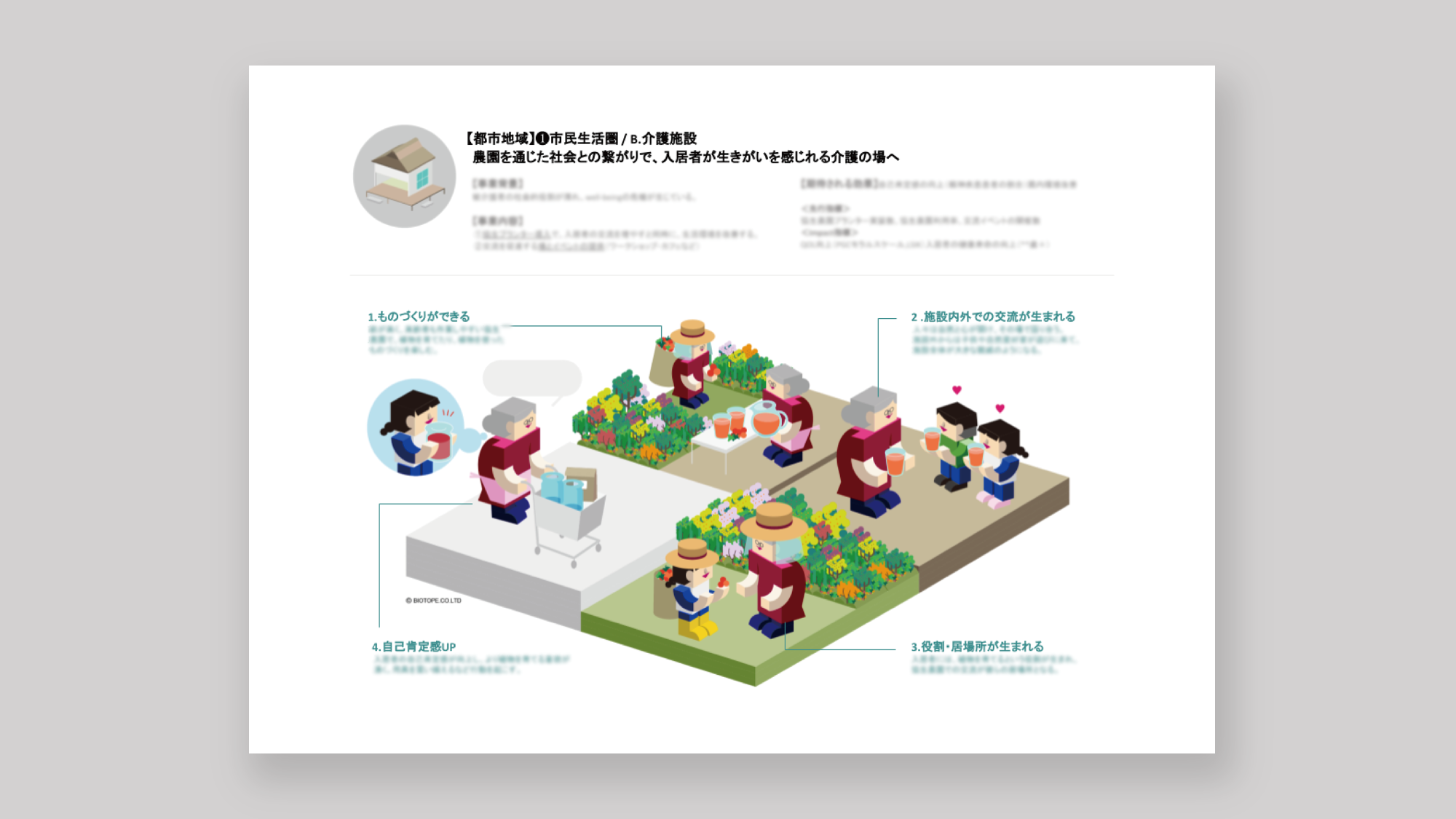 最近、社団のほうでは、BIOTOPEさんに作成いただいたシステムマップなどの資料をもとに、深掘りを行っているのですが、第三者の目でまとめていただくと自分たちにとって違和感のあるところと、ないところが逆にわかりやすくなるのだと思います。一つひとつの言葉は難しくないのだけれど、意味を深く考えて進まないといけない、最初の認識合わせができたという点でも、今後さらに重要になっていくように感じています。