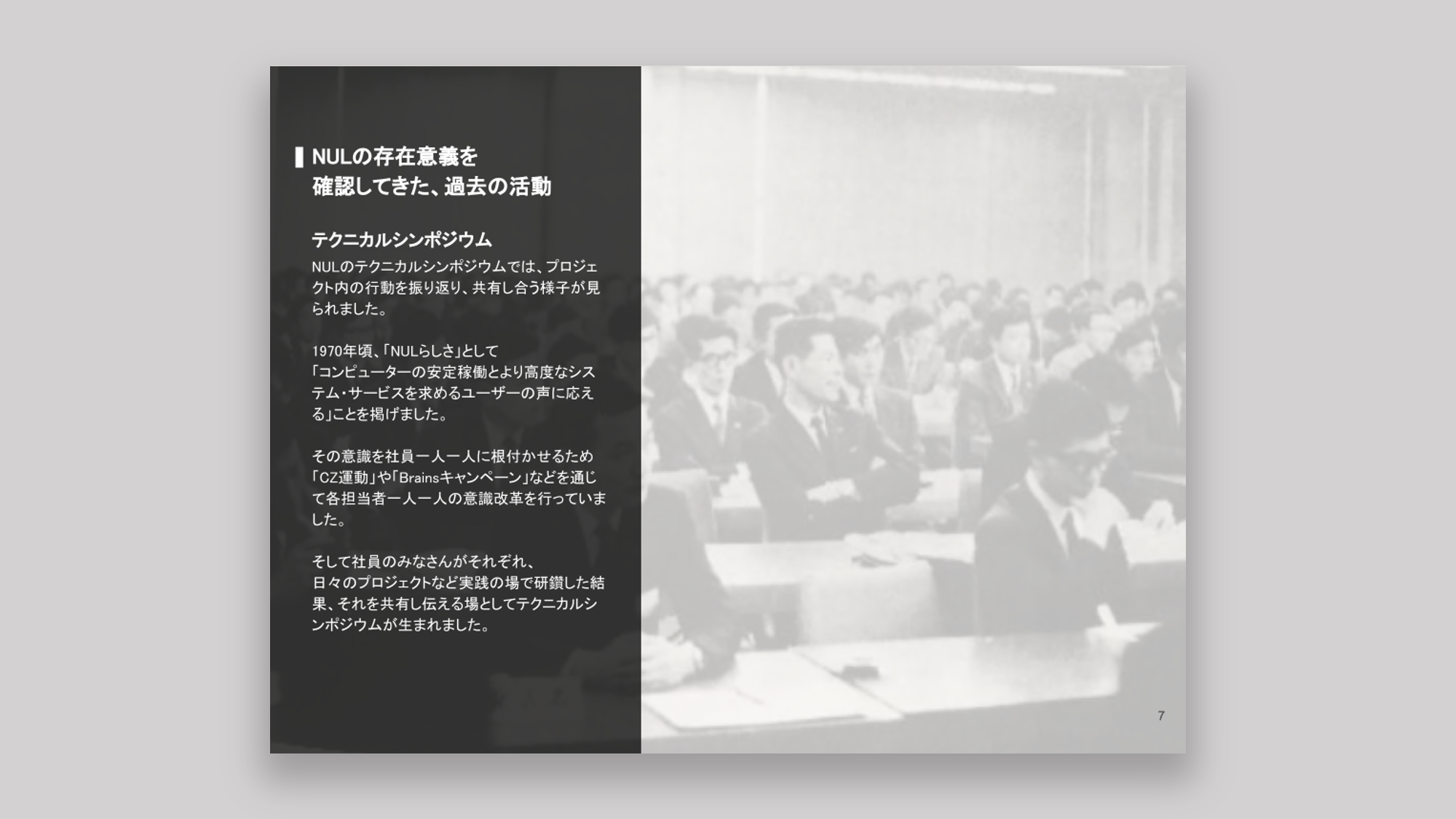 2017年ごろの役員合宿の際に「自社の存在意義に関する認識が不明確なのでは?」という意見が出て、社内で議論してきました。日本ユニシスはもともと米国ユニシス製品の販売・保守拠点として国内企業と合弁で法人を設立し、事業をスタートしましたが、事業環境の変化に伴い、資本関係を解消し、事業内容を大きくサービス中心に再構築してきた歴史があります。この先、主体性をもって将来の展望を描いていくためには、社名変更前にこの問題を整理しておく必要があると判断し、2020年に存在意義を探索するプロジェクトを立ち上げることにしました。